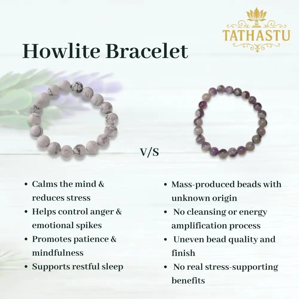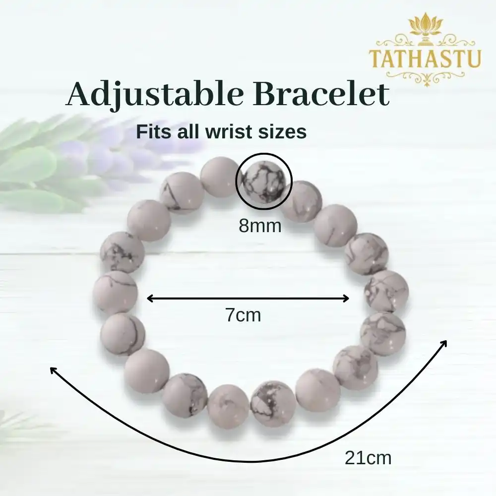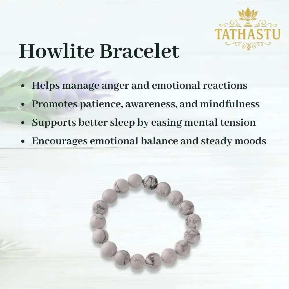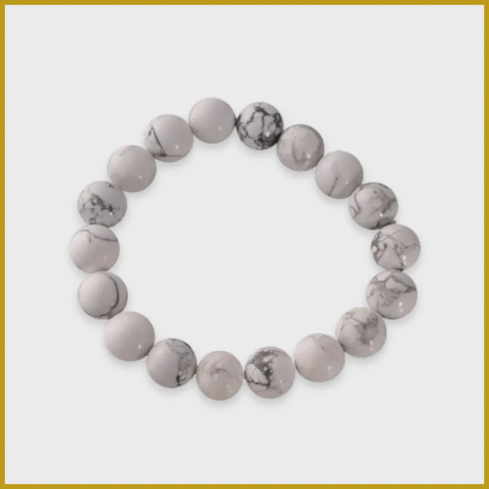 • The Howlite Bracelet carries gentle, moon-like energy that promotes calmness, patience, and emotional balance, even during stressful moments. Known as the Stone of Calm, Howlite helps ease anger, stress, and anxiety while encouraging deep, restful sleep.